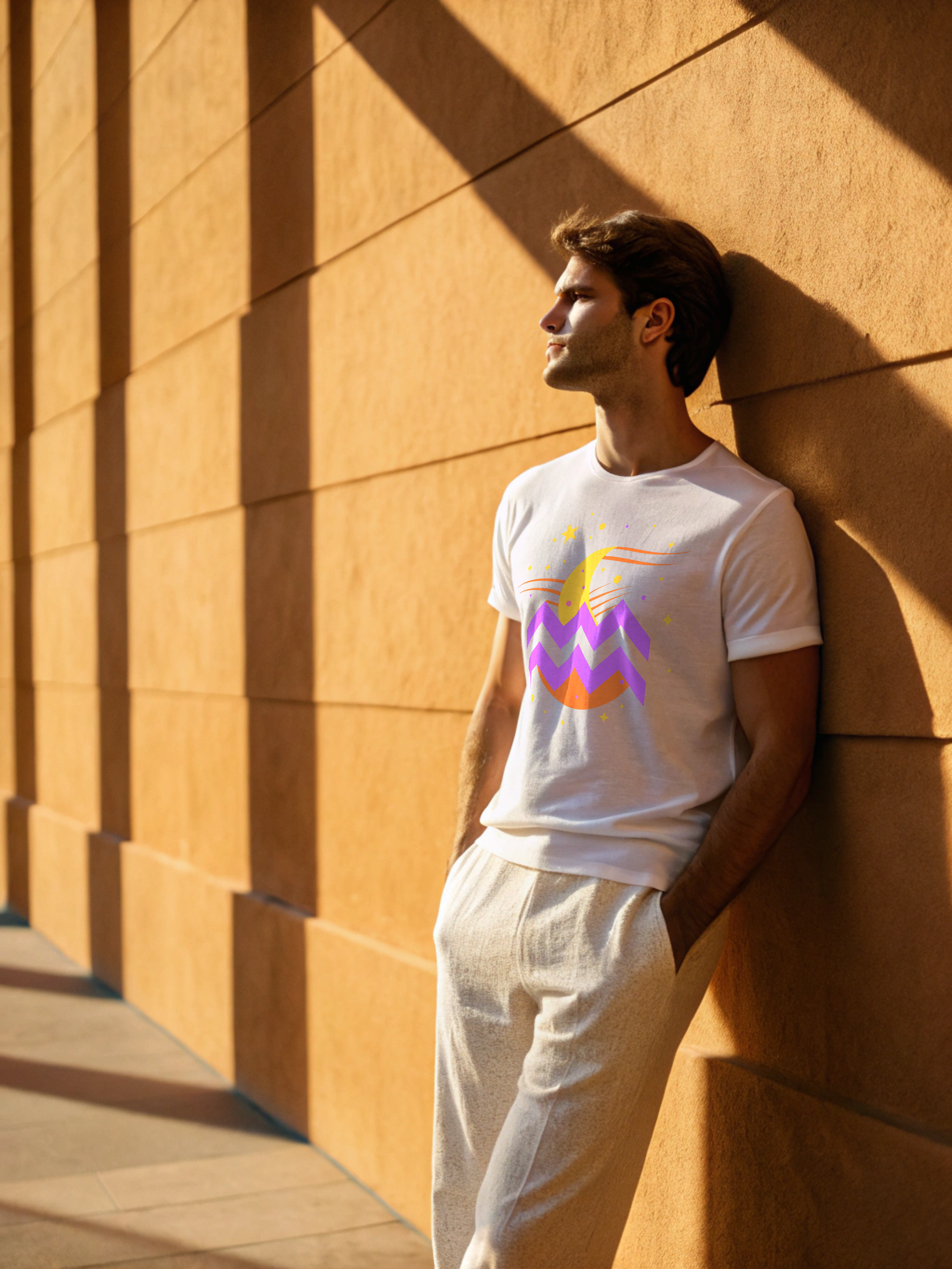 The Future Flow Tee in black is a moody, minimalist take on the Aquarius identity. With its pastel Aquarius symbol glowing against rich black cotton, the contrast mirrors the duality of the Aquarian mind—bright, disruptive, yet quietly composed.