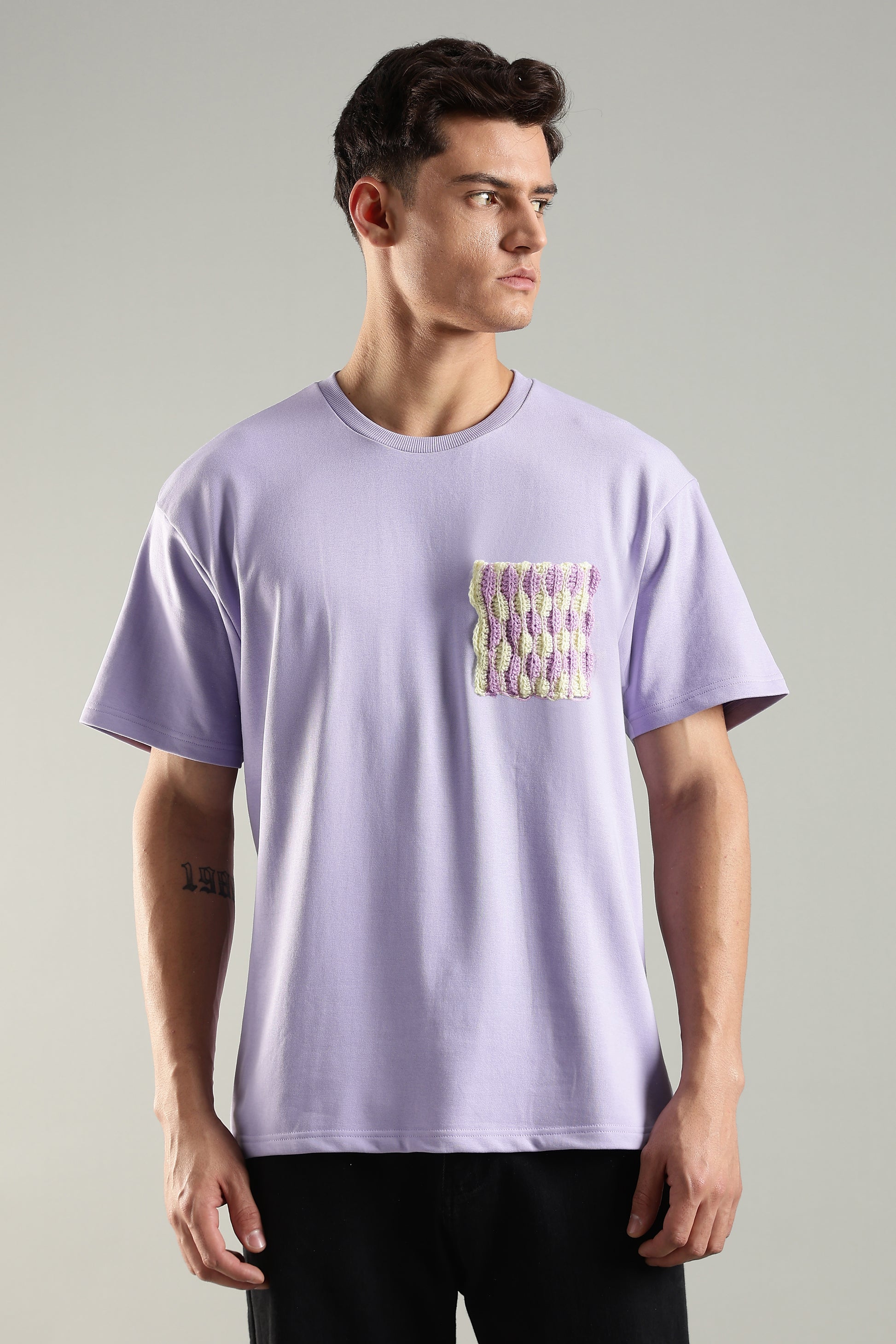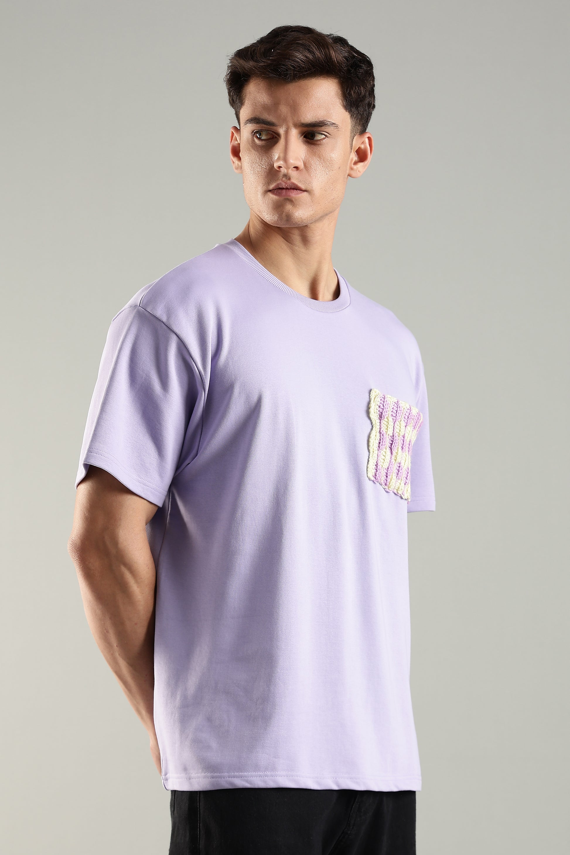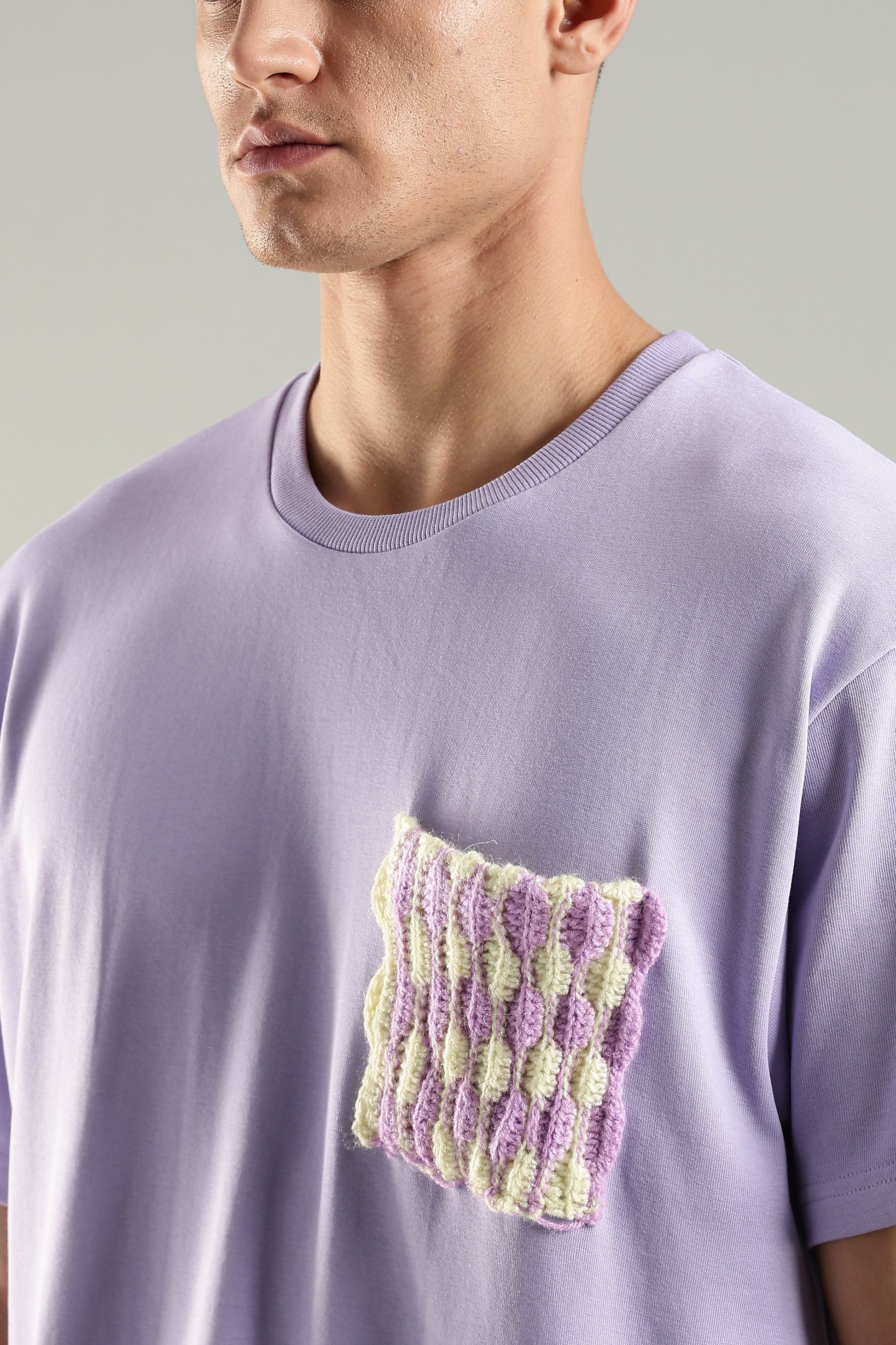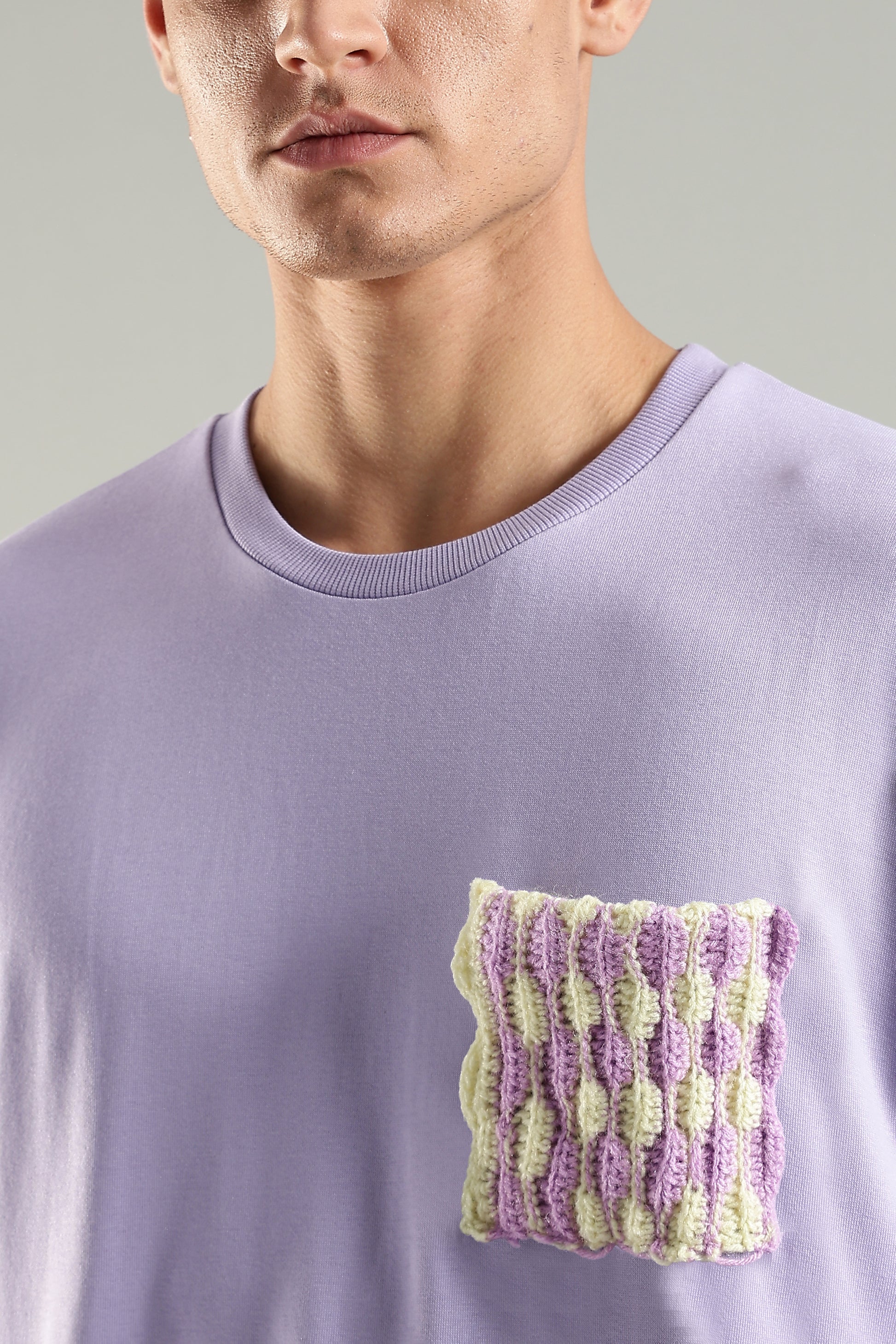 Lavender Artisanal T-Shirt with Hand-Crocheted Pocket – For the Discerning Minimalist