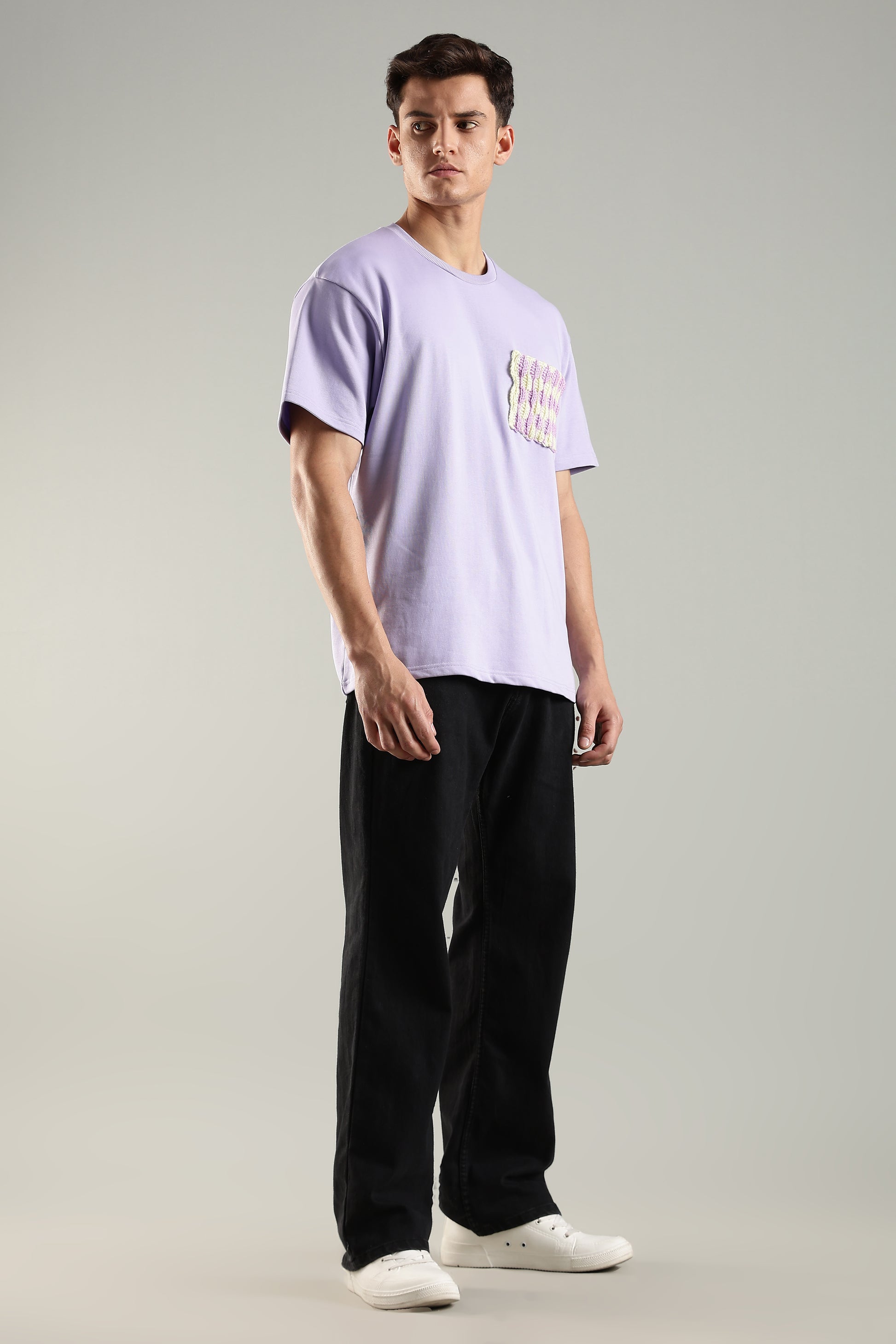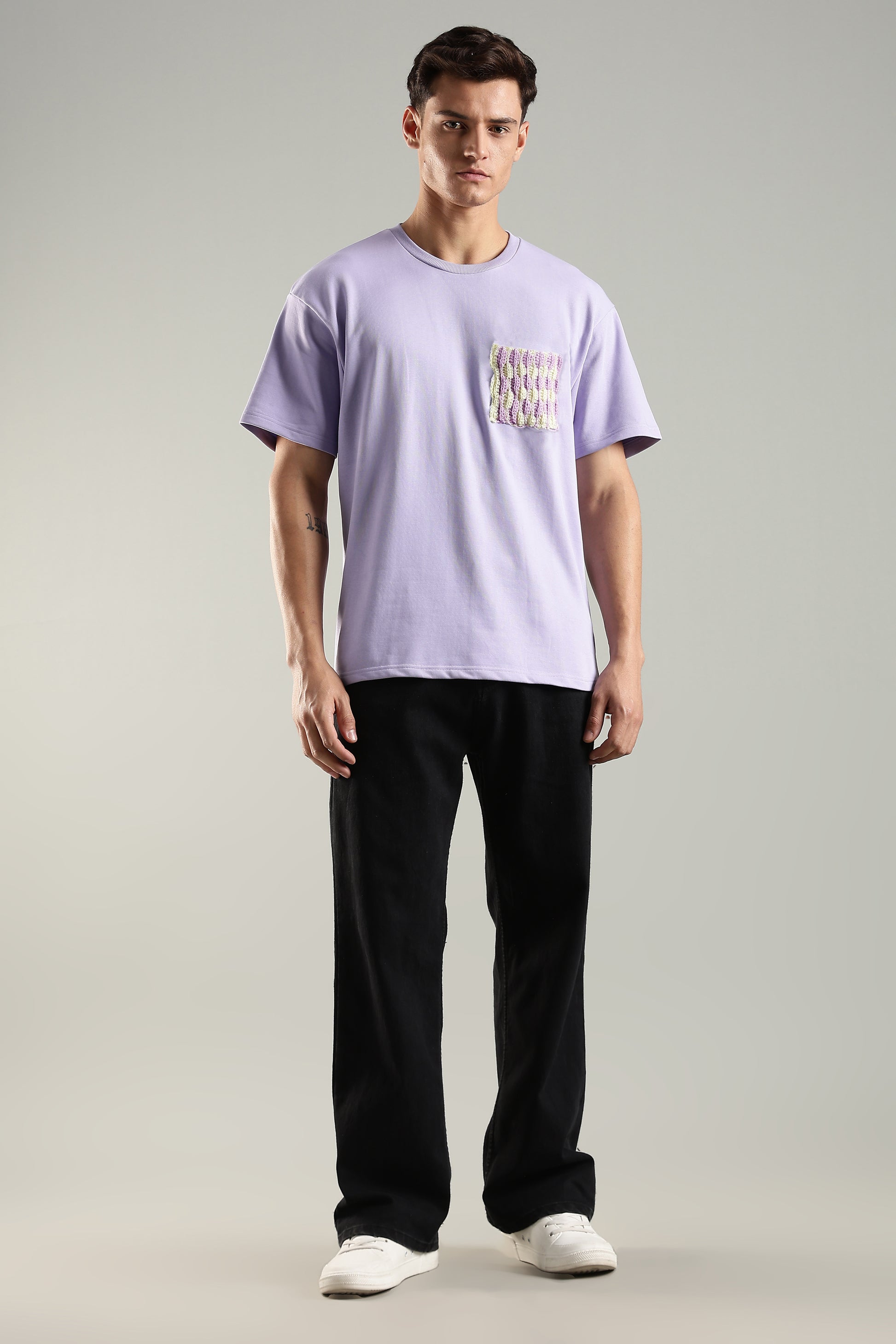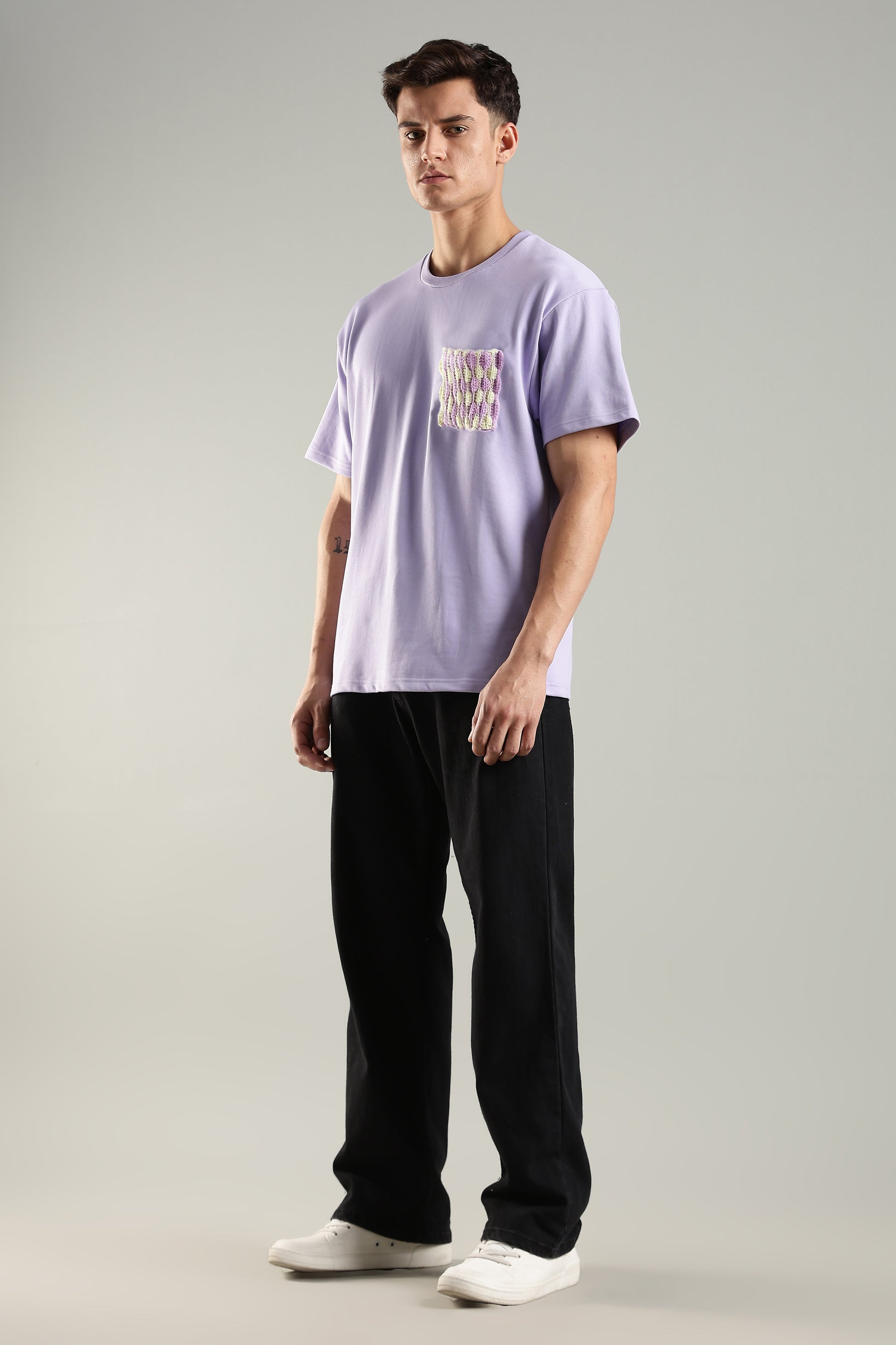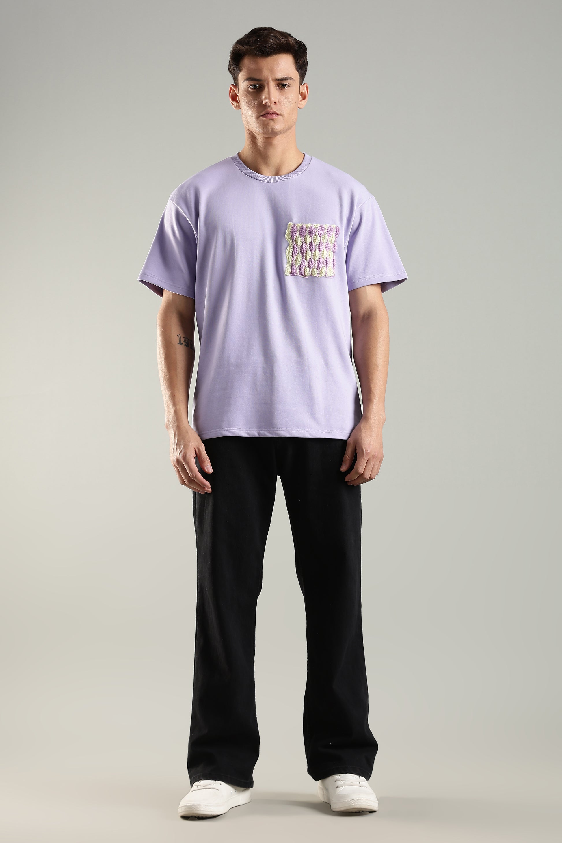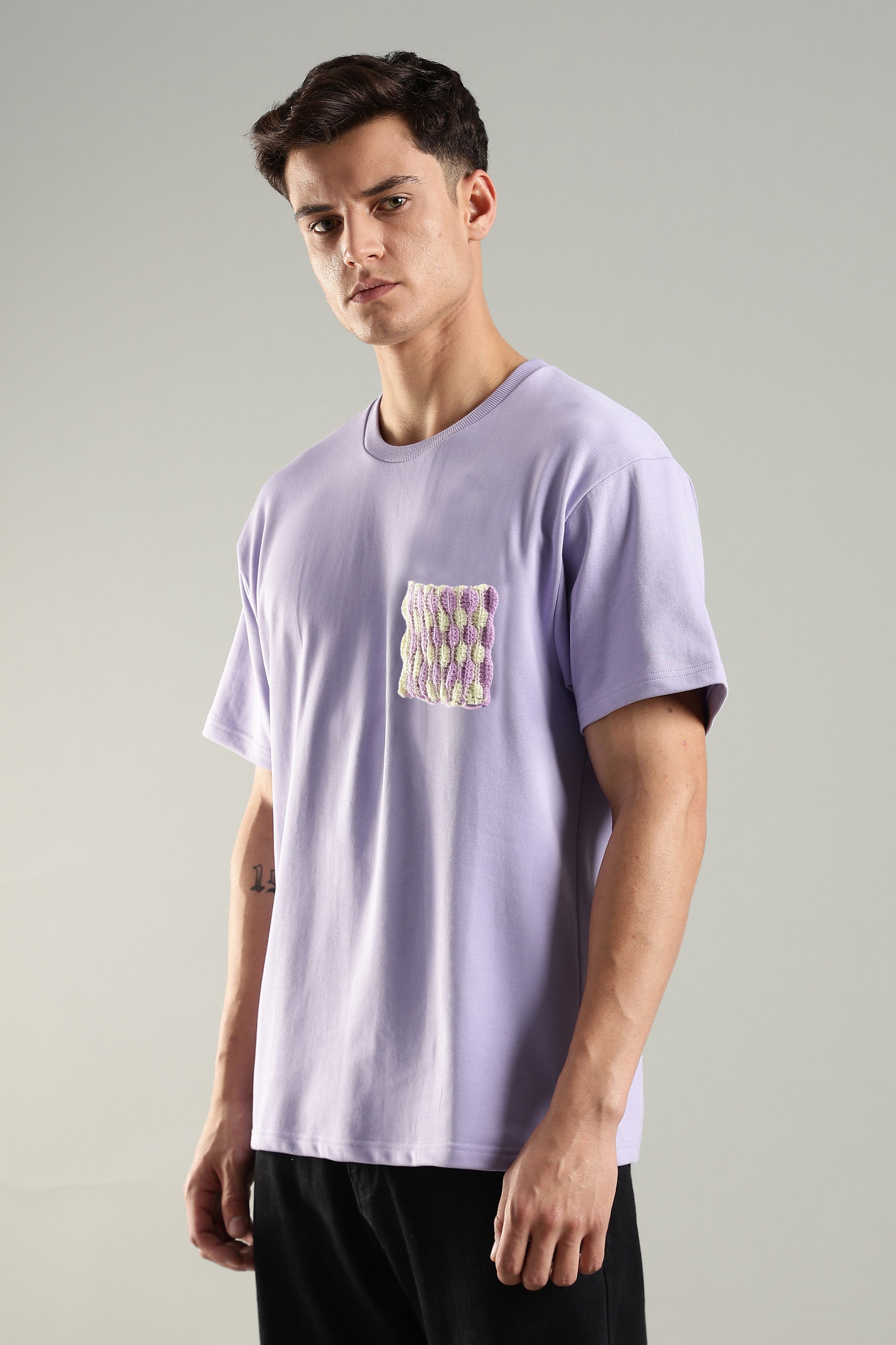 Lavender Artisanal T-Shirt with Hand-Crocheted Pocket – For the Discerning Minimalist