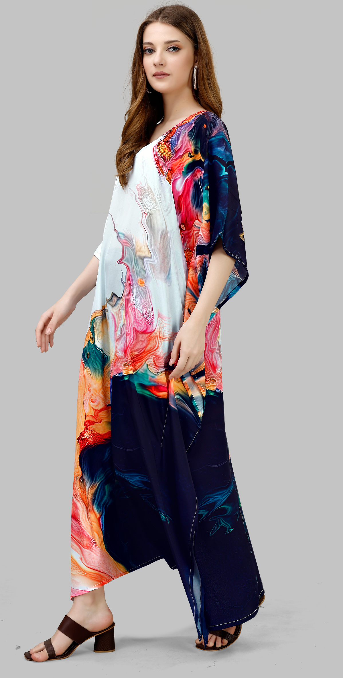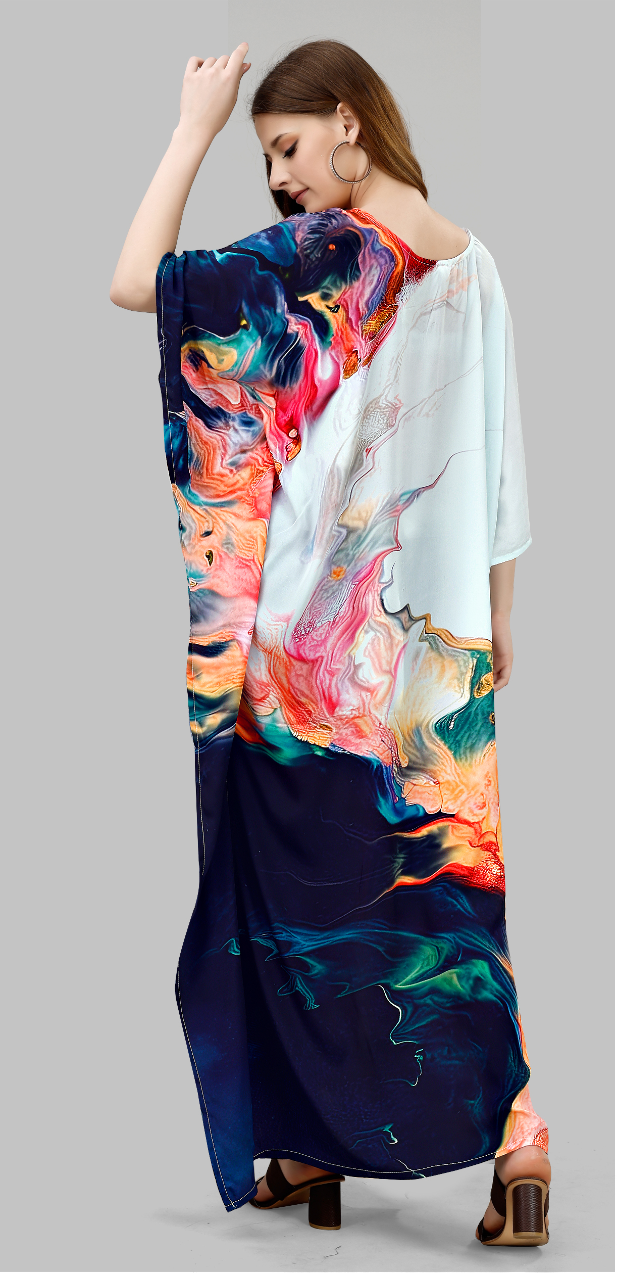 Like starlight scattered across stone, the Lunar Veins Kaftan mirrors the beauty of a marble sky. Its cosmic swirls bring depth and serenity, moving with ease and poise. A statement of understated grandeur, made for evenings that hold a touch of the infinite.