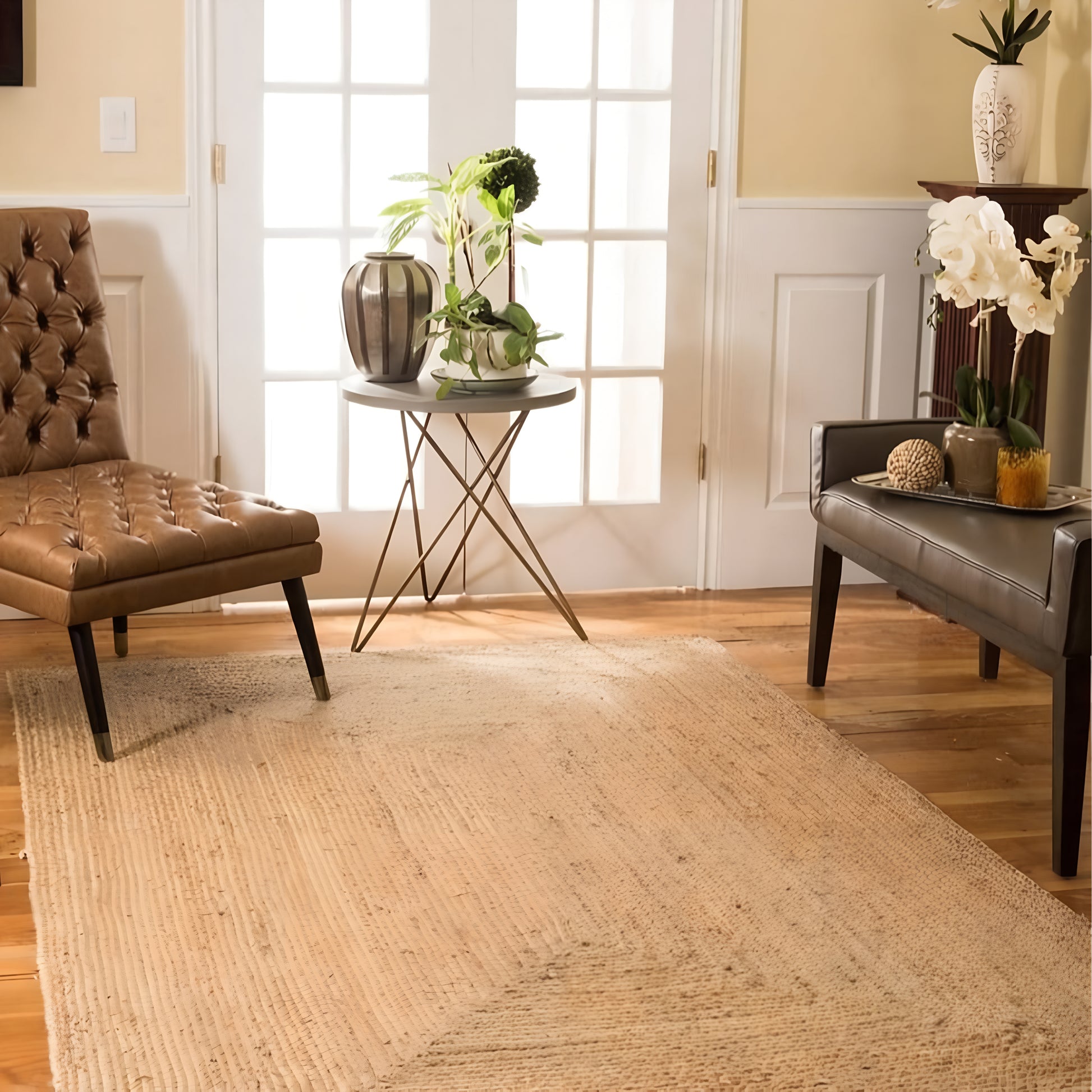 Subtle in presence, strong in soul — Prithvi is a grounding piece that brings the quiet strength of nature into your home. Crafted from handwoven jute in its purest form, its understated flatweave texture offers a calming, lived-in look. Whether styled in a sunlit reading corner or layered under a low coffee table, this rug reflects the beauty of simplicity.