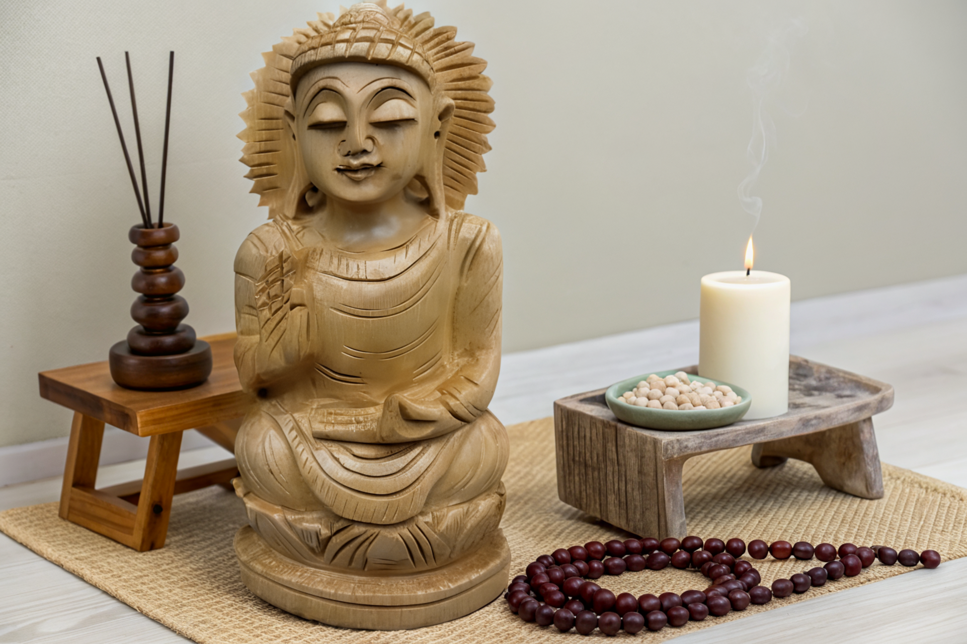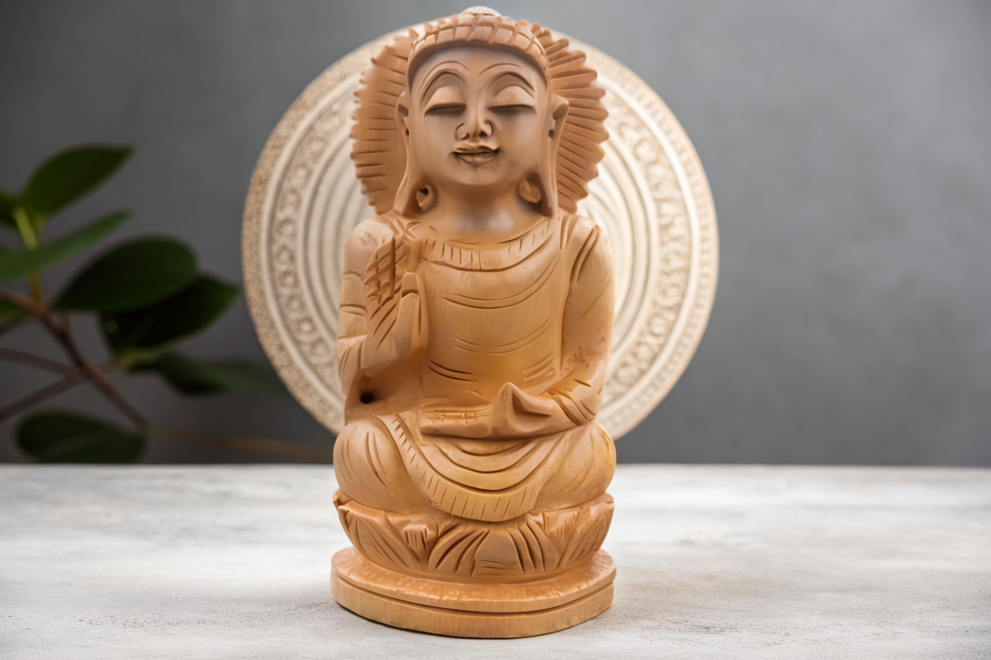 Crafted from warm-toned wood, the natural grains enhance its spiritual charm. Whether placed on a meditation altar, a study nook, or your living room window, it’s designed to remind you to return to breath, to stillness, to self.