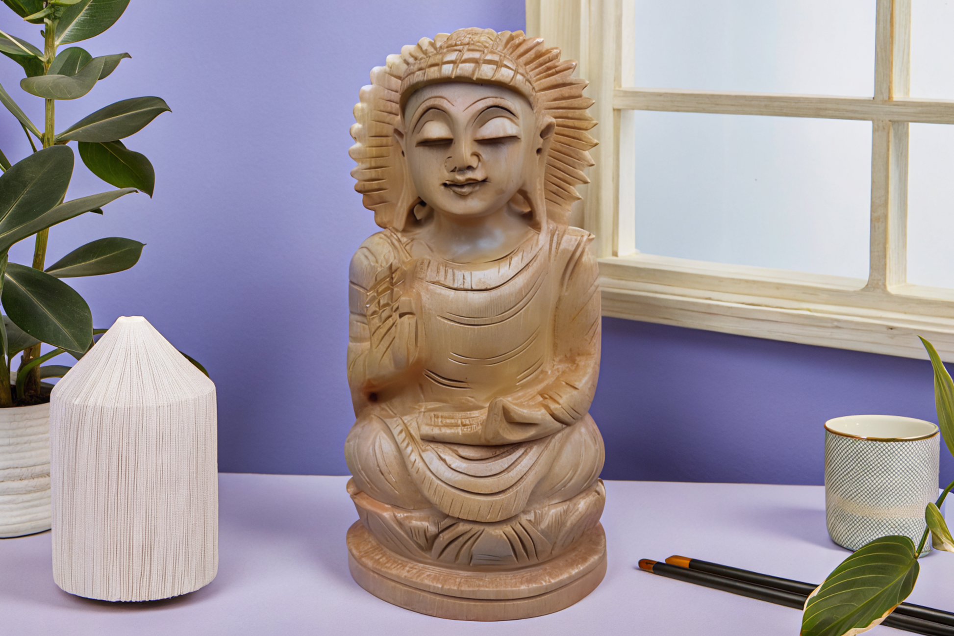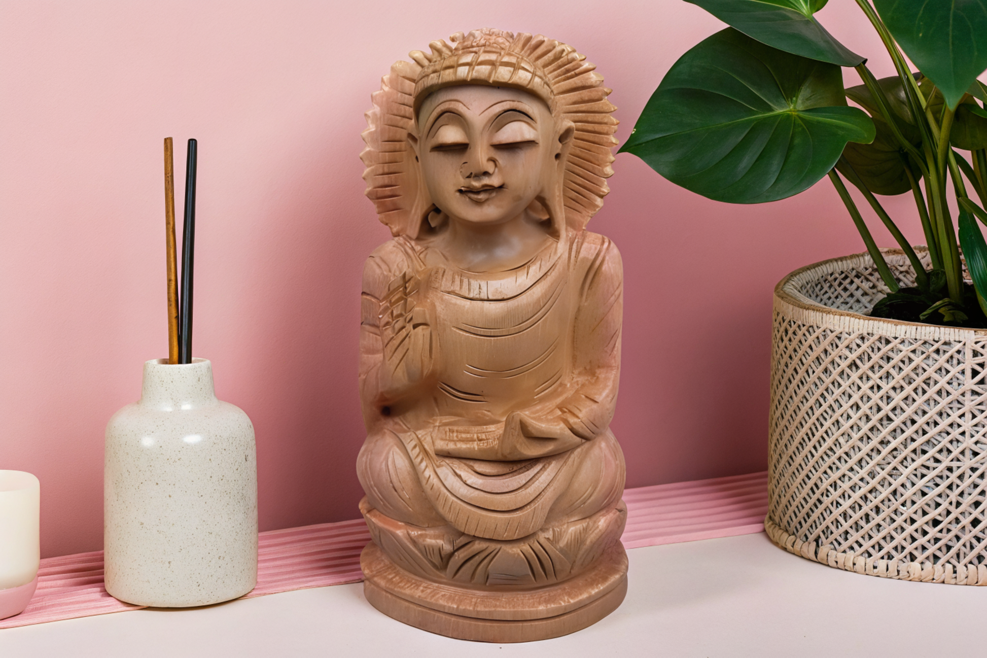 This serene wooden Buddha radiates calm energy and quiet strength — a mindful accent for any corner that calls for peace. With intricately carved robes and a soft, meditative expression, this sculpture is more than decor — it’s a gentle presence.