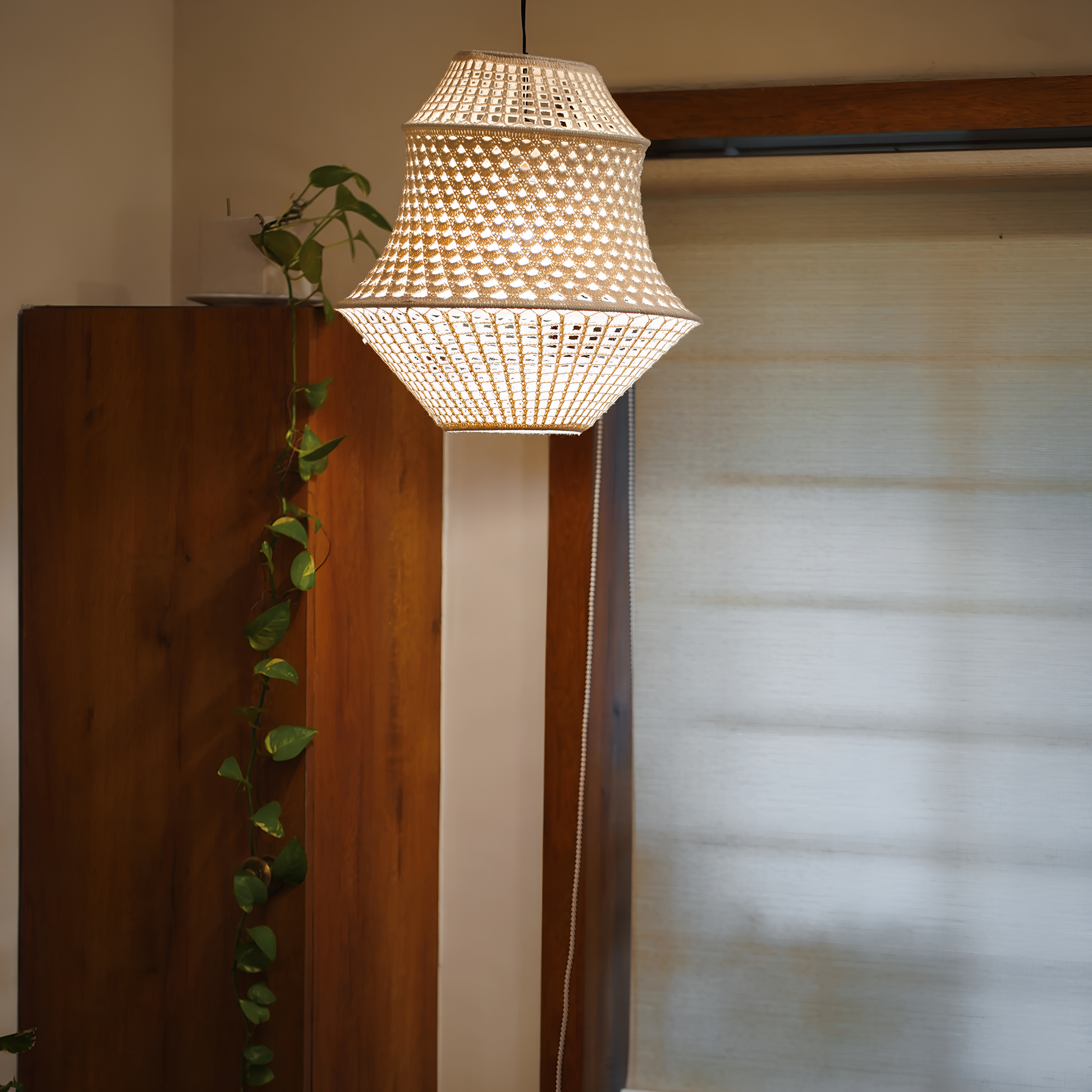 A soft symphony of light and texture, the Sitara Hand-Crocheted Pendant Lamp brings cozy warmth and artisanal charm to any space. Meticulously handcrafted using traditional crochet techniques, this sculptural light fixture casts a delicate glow through its intricate openwork pattern — evoking a sense of calm, nostalgia, and thoughtful design.