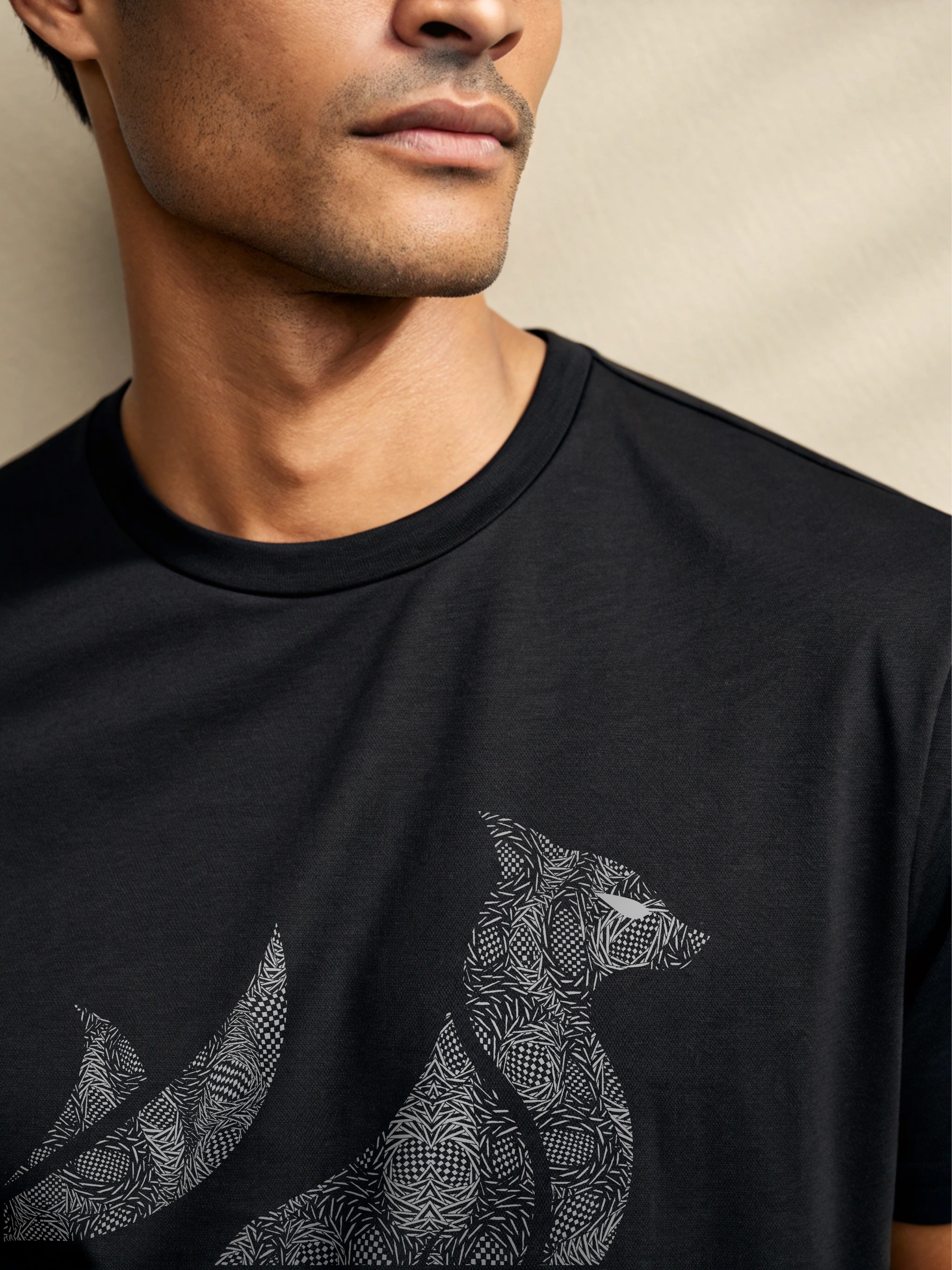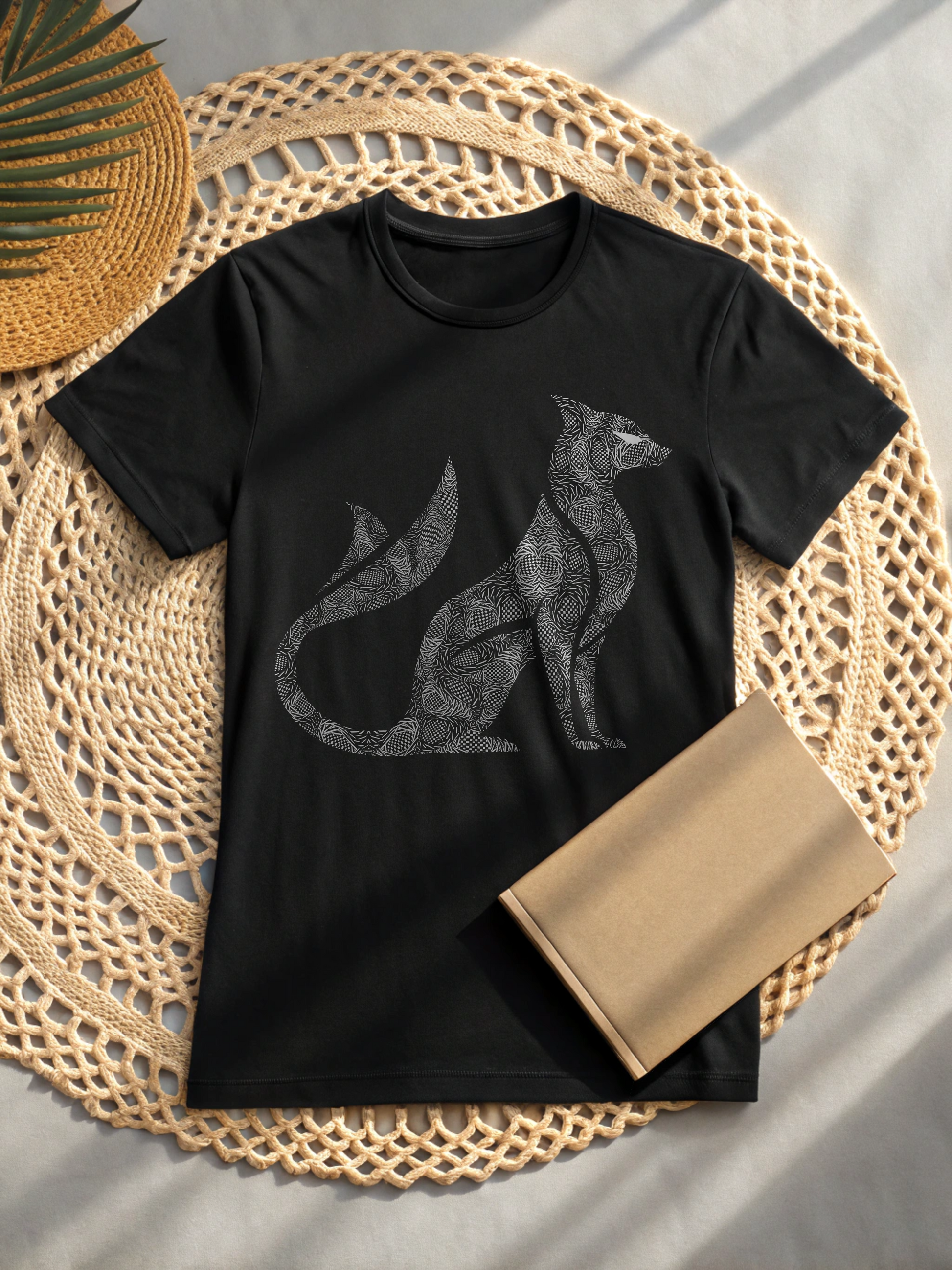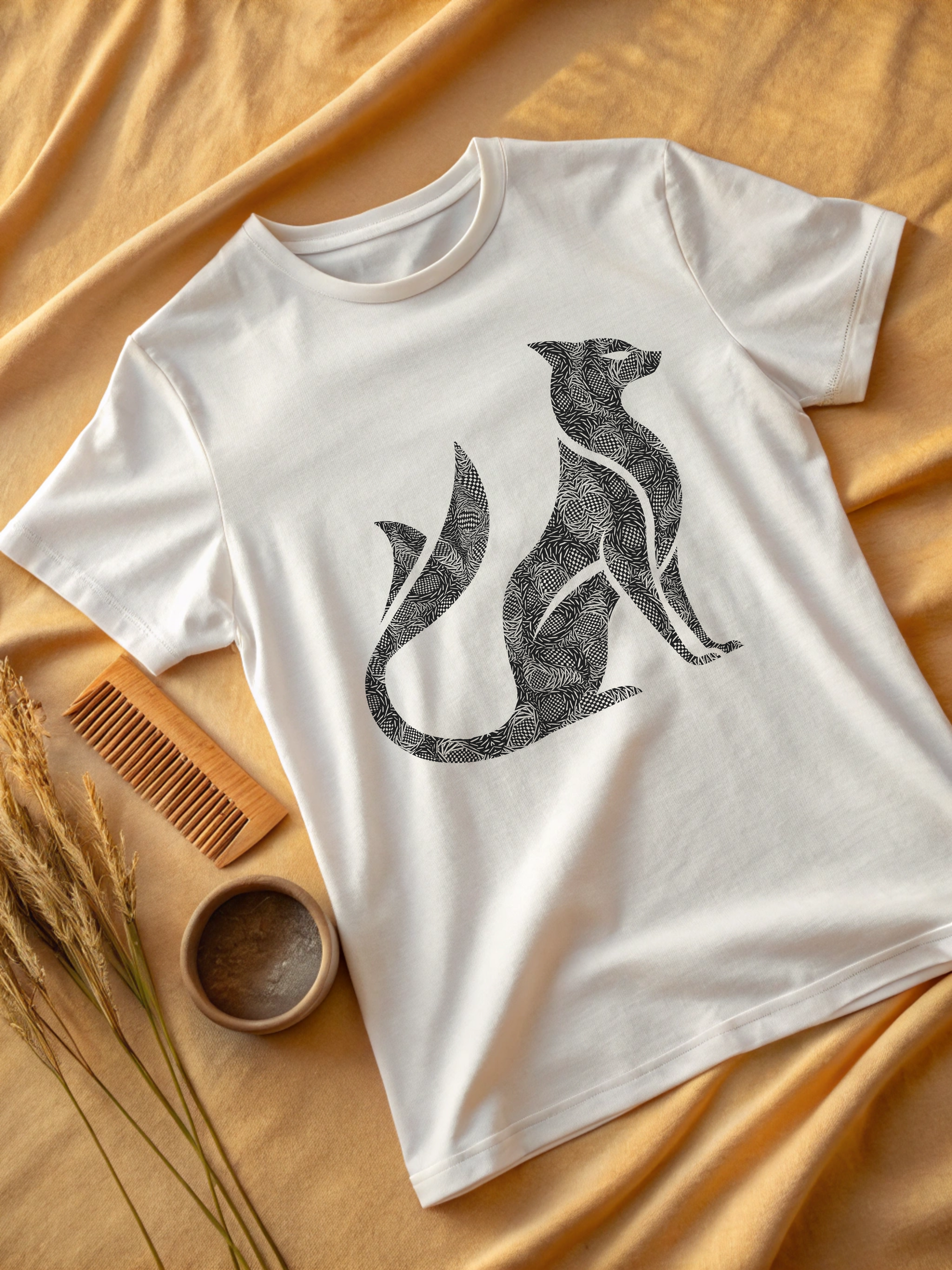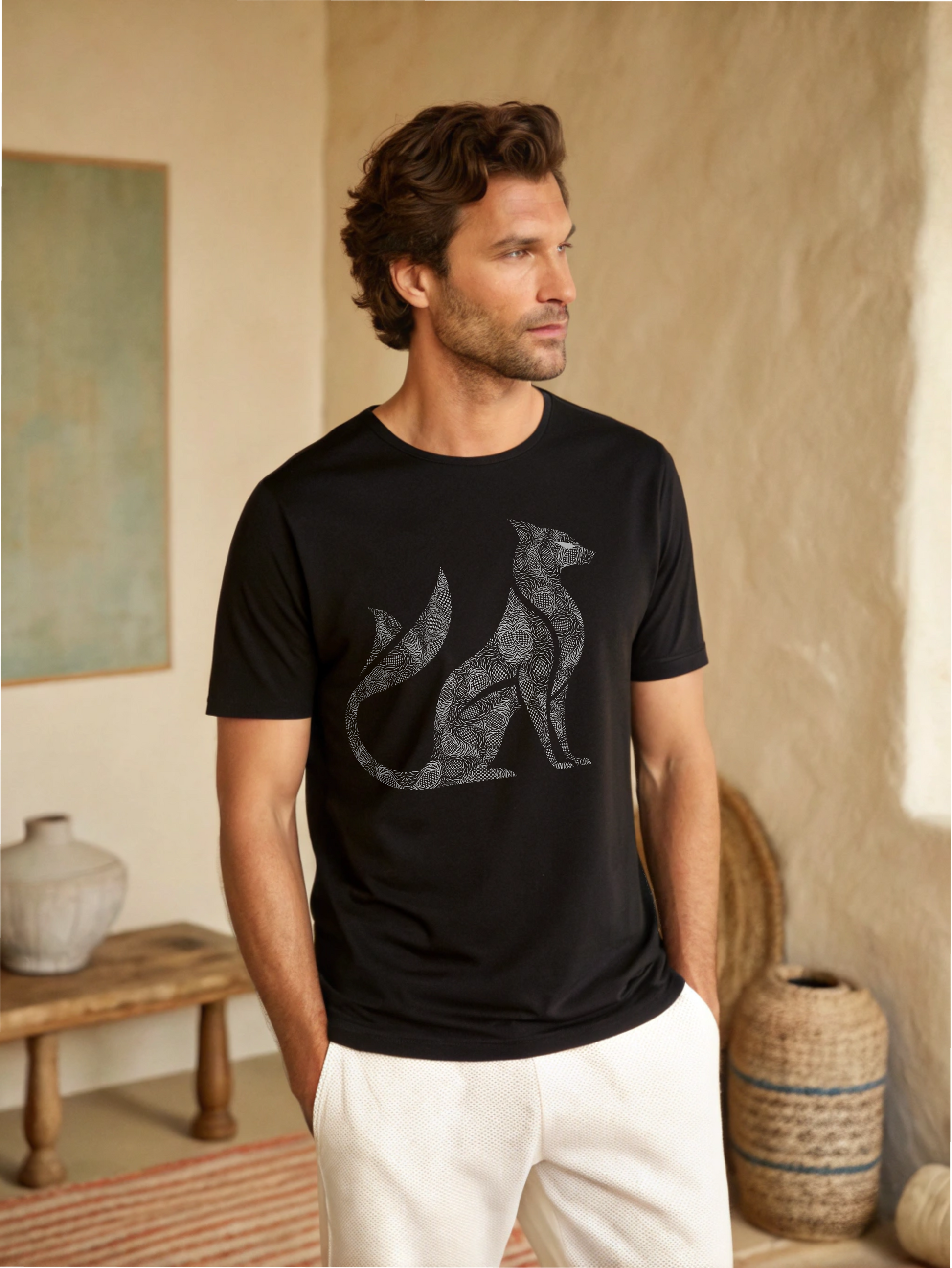 This white men’s tee features a striking black ink cat motif — detailed, meditative, and bold in contrast. Tailored for effortless comfort and timeless layering, it’s perfect for everything from urban outings to creative downtime.