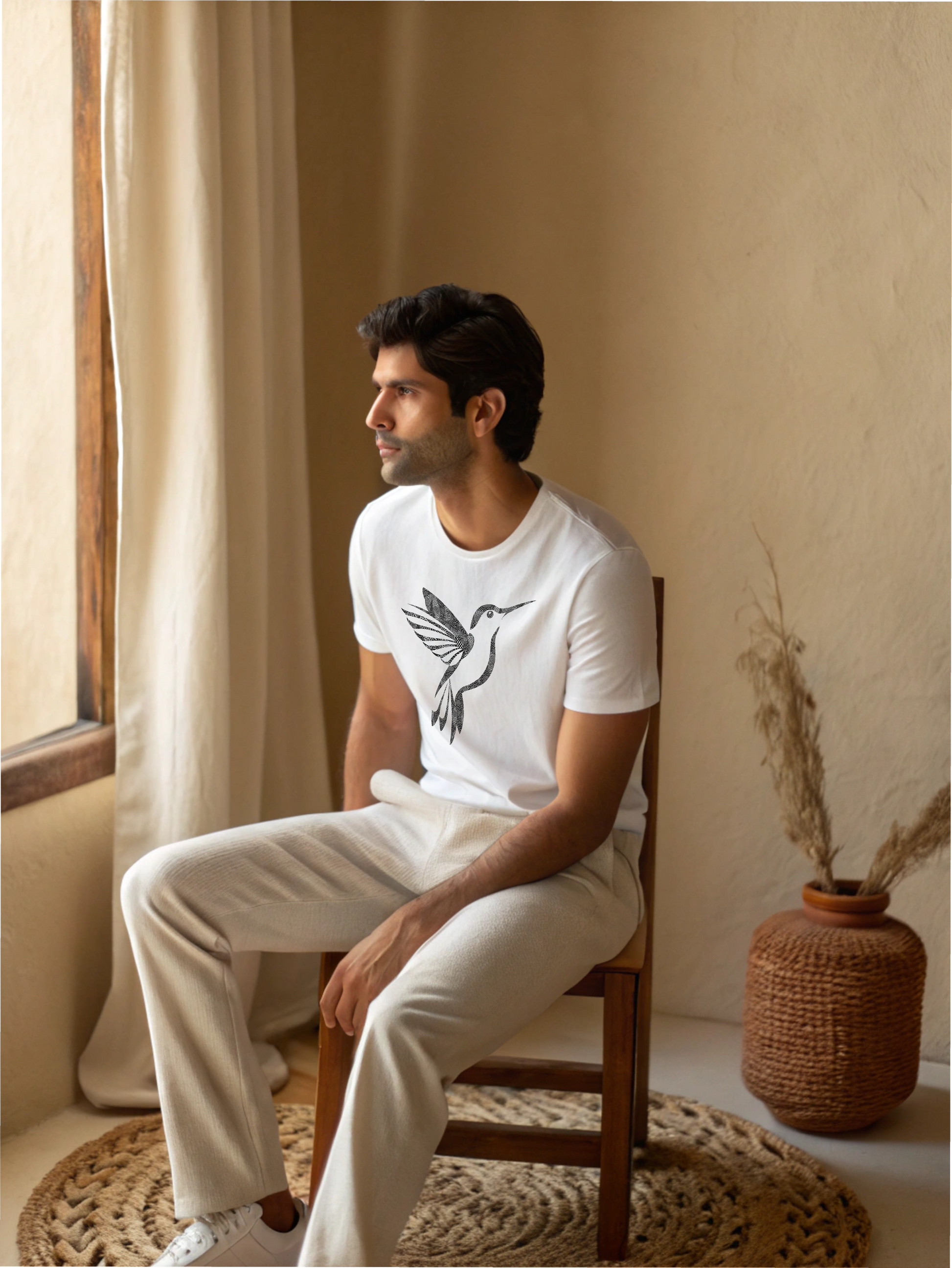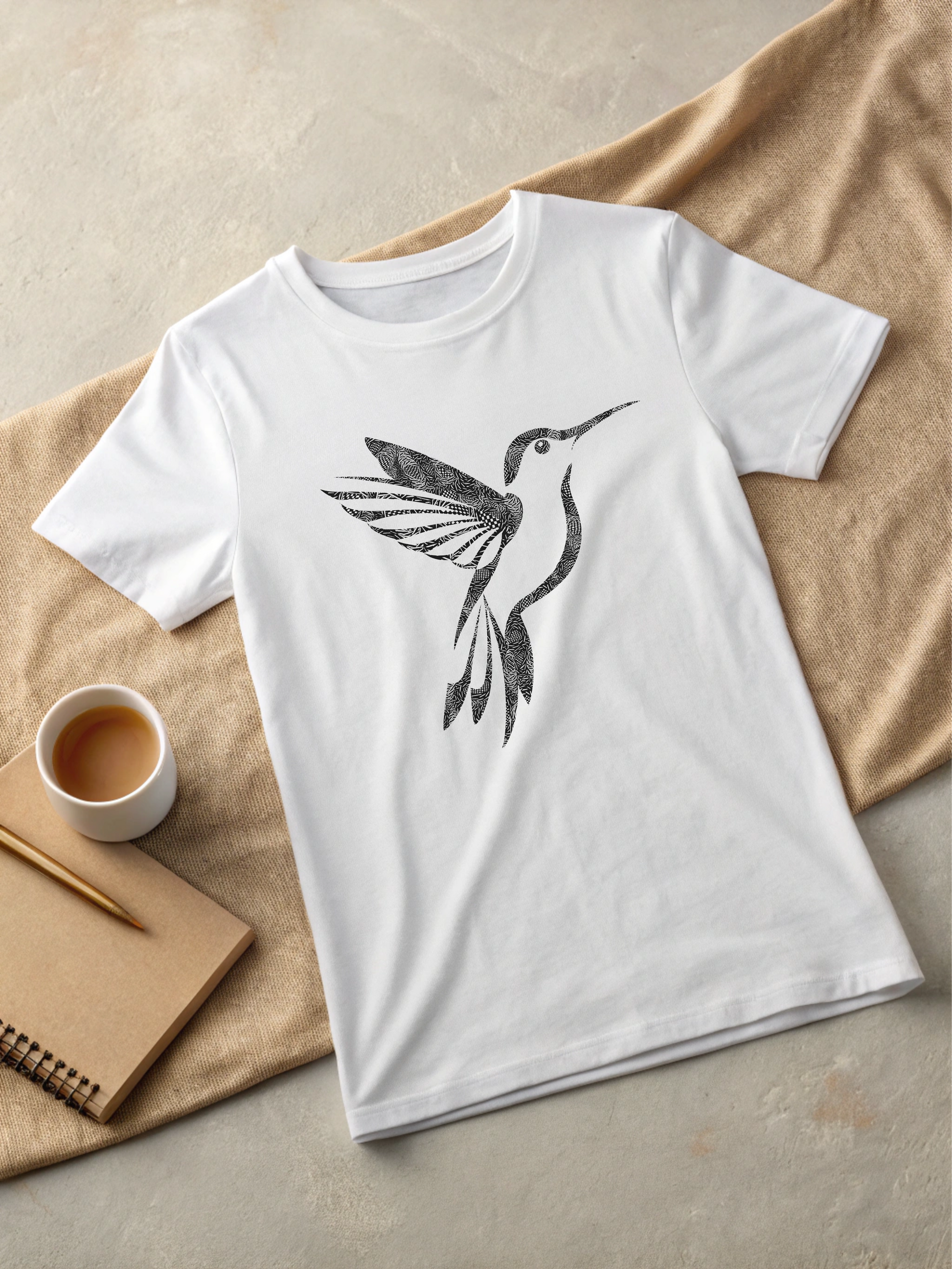 Set against clean white, this hand-illustrated hummingbird holds a rare energy — agile, present, and precise. A symbol of focus and freedom, its wings whisper a deeper rhythm: move with lightness, arrive with intention.